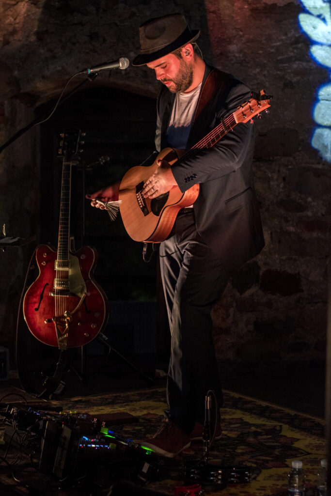 Ander Zubillaga gitarra perkusio modura erabiltzen. Argazkia Josetxo Perez.